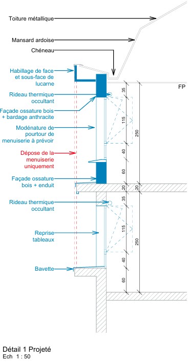 • Remplacement des menuiseries extérieures et ajouts de brise-soleil pour amélioration thermique et simplification des façades du bâtiment des années 90