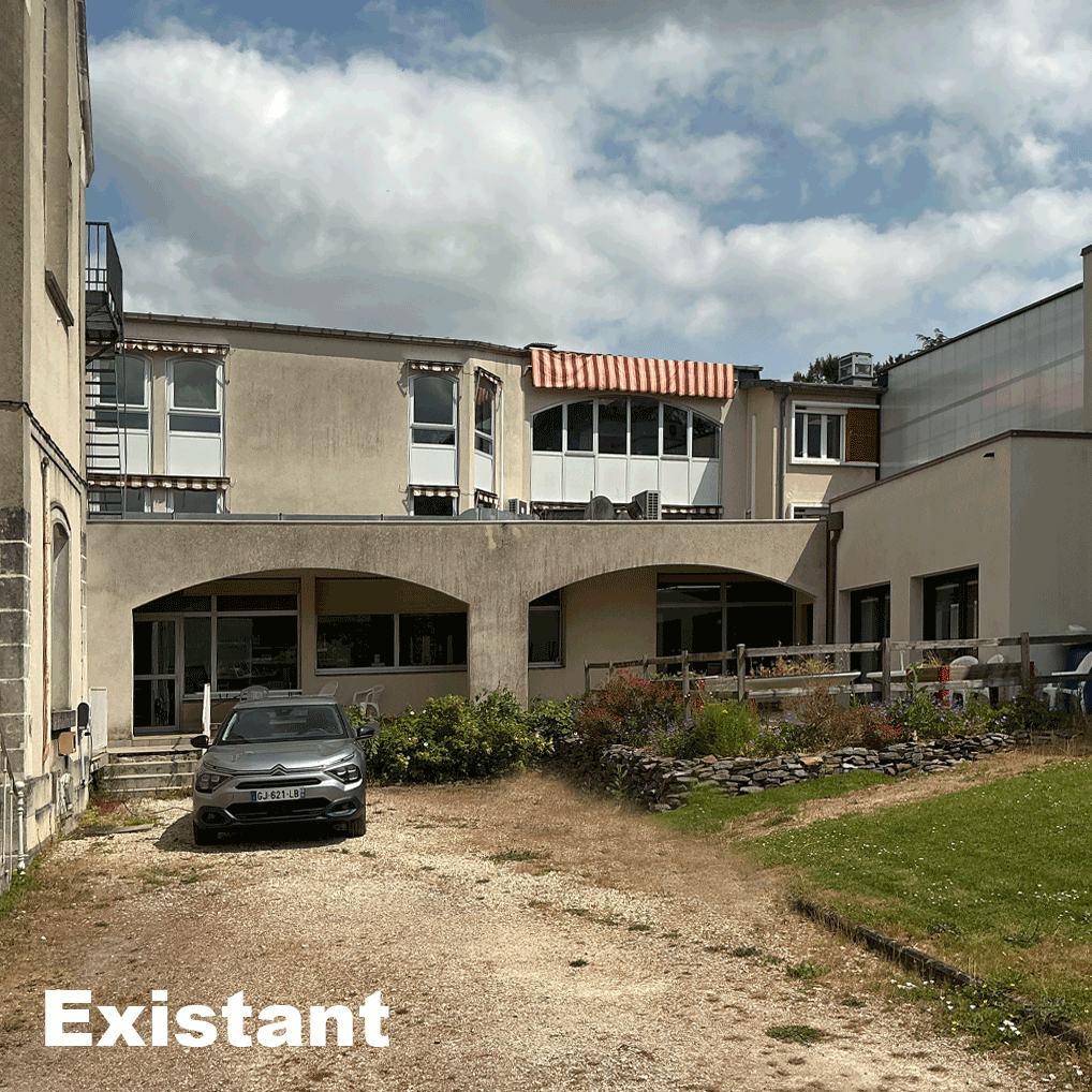 • Restructuration du bâtiment des années 60 pour homogénéisation des surfaces, mise aux normes énergétiques et PMR des chambres et salles de bain